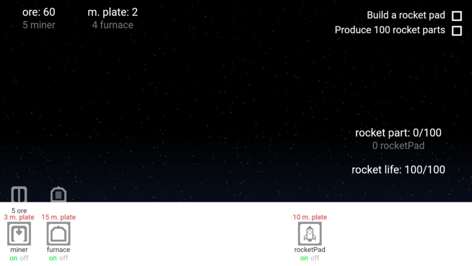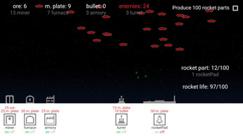 Construct buildings, accumulate resources and defend yourself against waves of enemies to build your rocket.